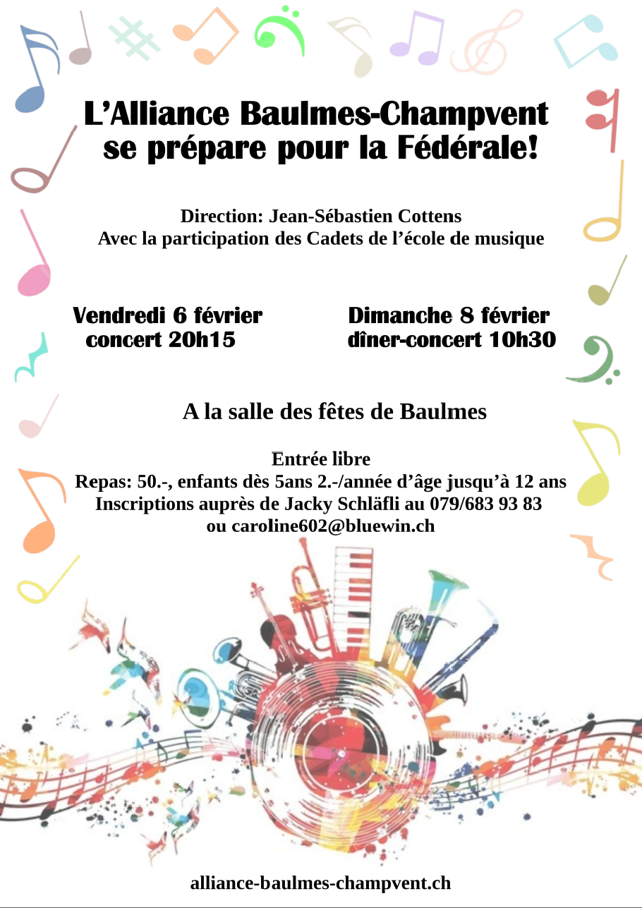 Venez nous écouter le 6 février 2026 à 20h15 à la salle des fêtes de Baulmes.